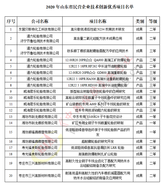 6月12日,山東省民營企業(yè)優(yōu)秀創(chuàng)新成果認定名單對外公布,君樂輪胎的成果列入其中。